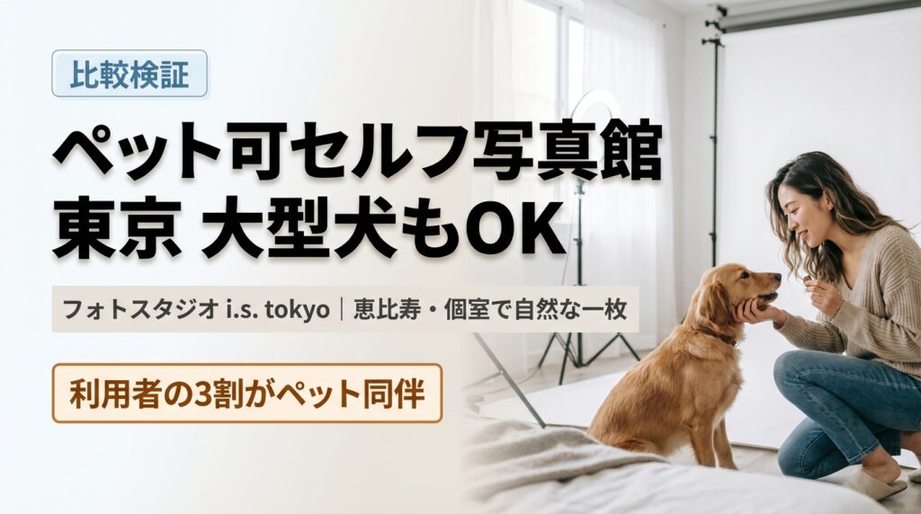 東京でペットと撮れるセルフ写真館をお探しですか?都内には大型犬OKのスタジオが増えており、料金は7,500円〜。この記事では東京のペット可セルフ写真館6店舗の比較と選び方、撮影準備、自然な表情を引き出すコツを解説します。 i.s. tokyoの経験上、お客... -